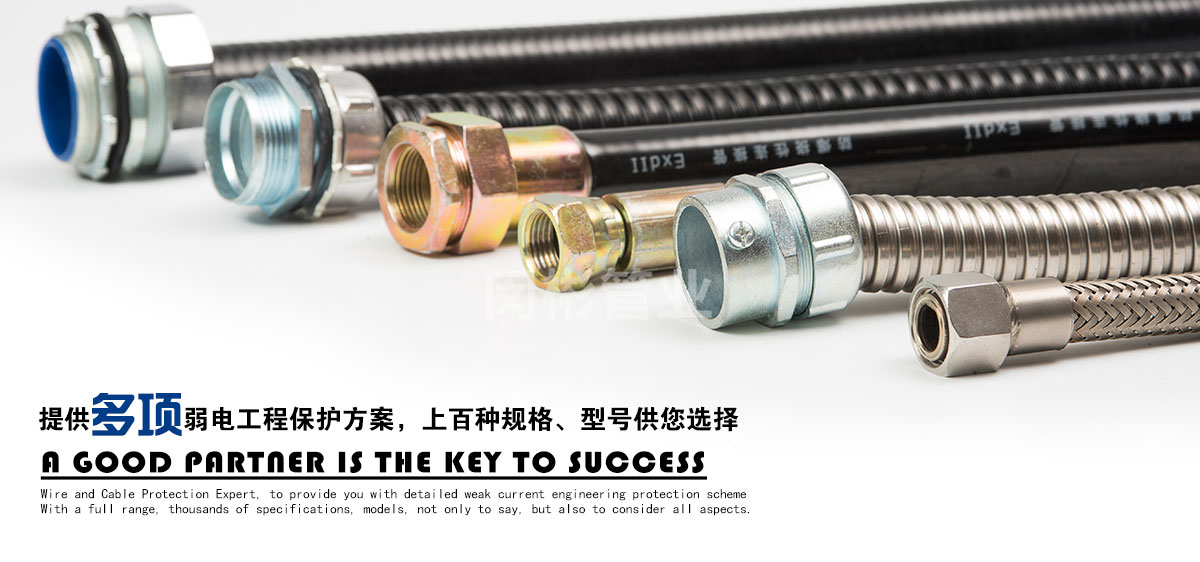 除此之外,公司還致力于金屬軟管接頭,普利卡管,普利卡接頭,不銹鋼穿線管的銷售。公司本著品種多、質量優、服務好的宗旨,不斷開發、創新產品,以滿足日益發展的市場需要。產品主要包括:金屬軟管接頭 ,橋架接頭,塑料軟管接頭,AD接頭,不銹鋼接頭,普利卡接頭,包塑金屬軟管,不銹鋼軟管,不銹鋼金屬軟管,不銹鋼編織軟管,普利卡軟管,尼龍軟管,塑料波紋管,尼龍拖鏈等機床配件。產品廣泛應用于建筑、機床、鐵路、車輛、化工、汽車、監控、建筑裝修、建筑裝飾、建材、裝修裝飾等行業。上海閔彬管業有限公司高質量包塑管在實際使用中多家工程單位的認可、使用與推廣。